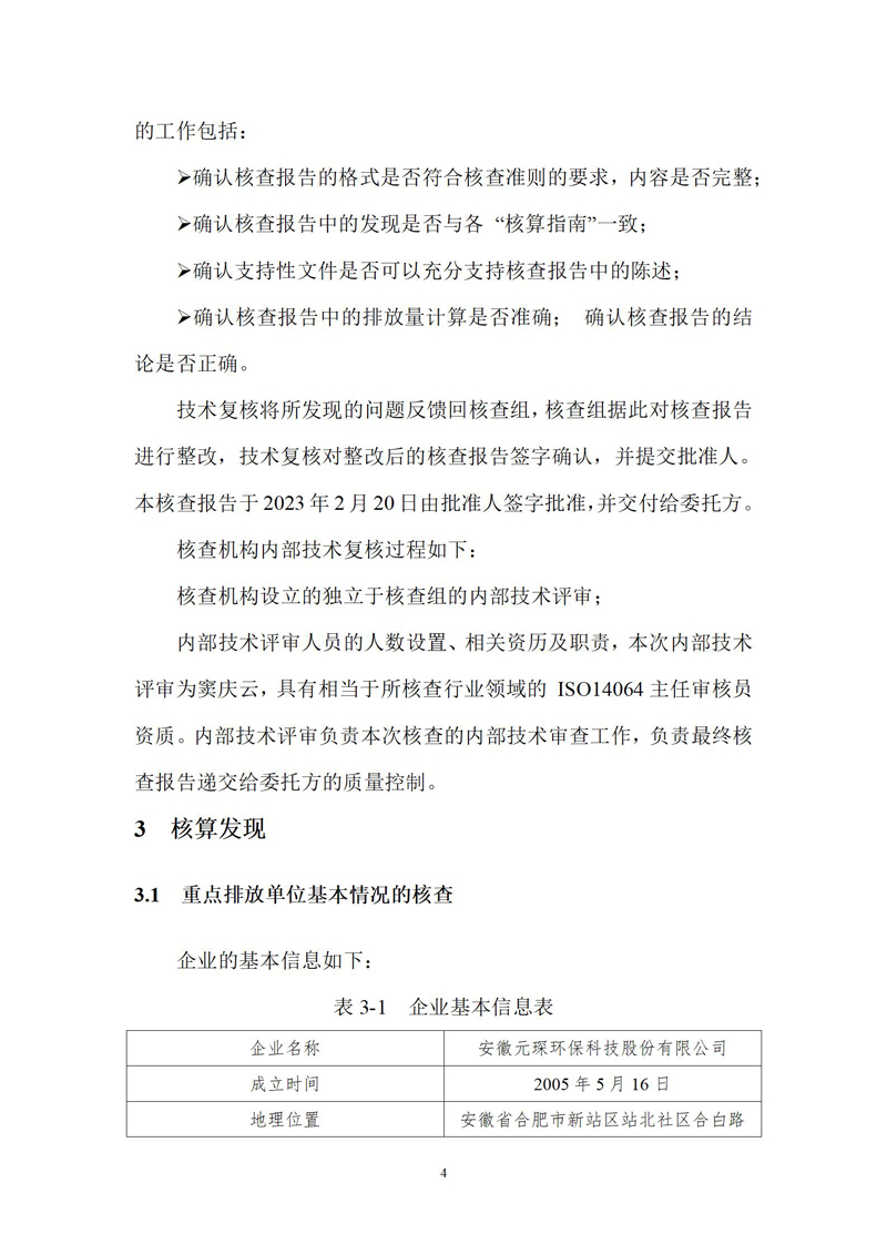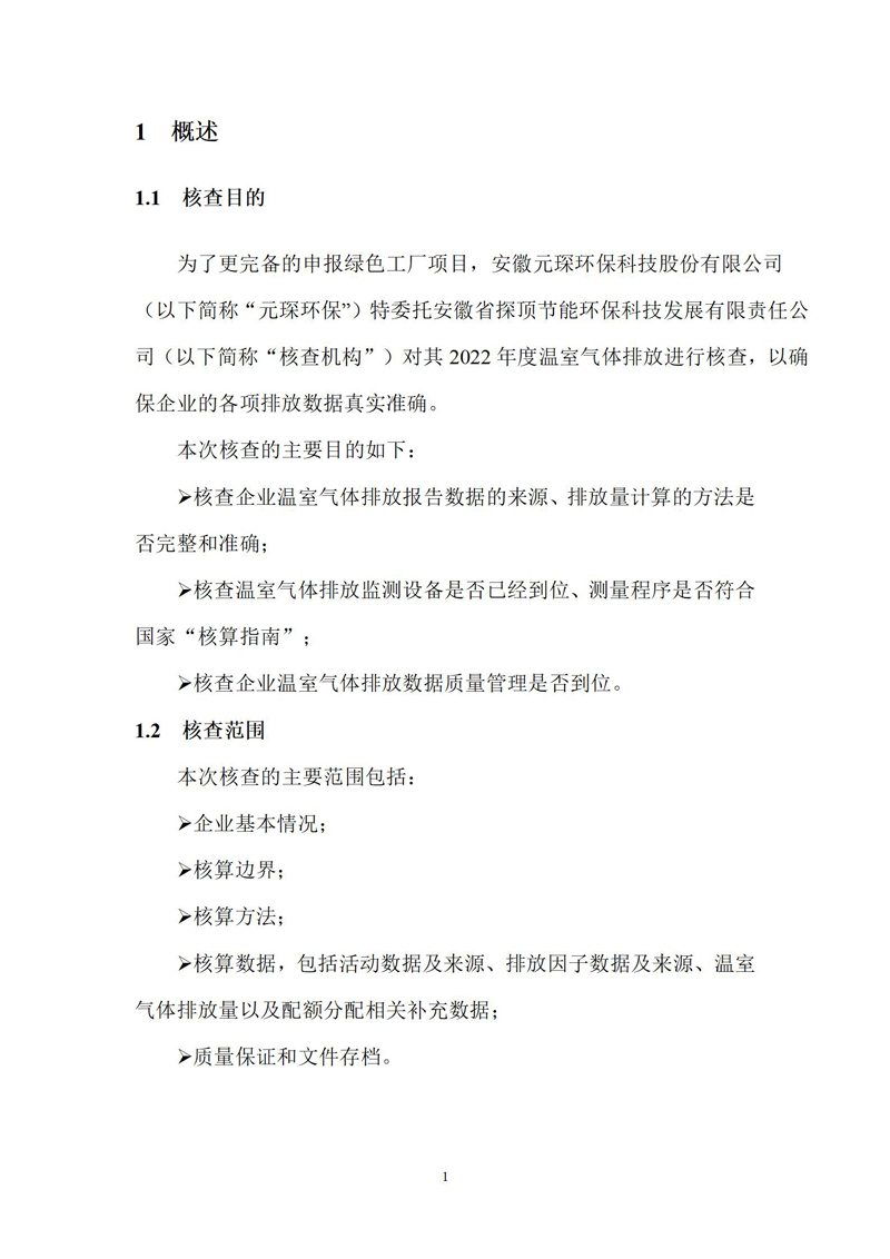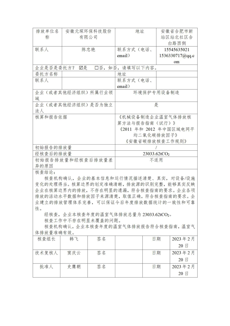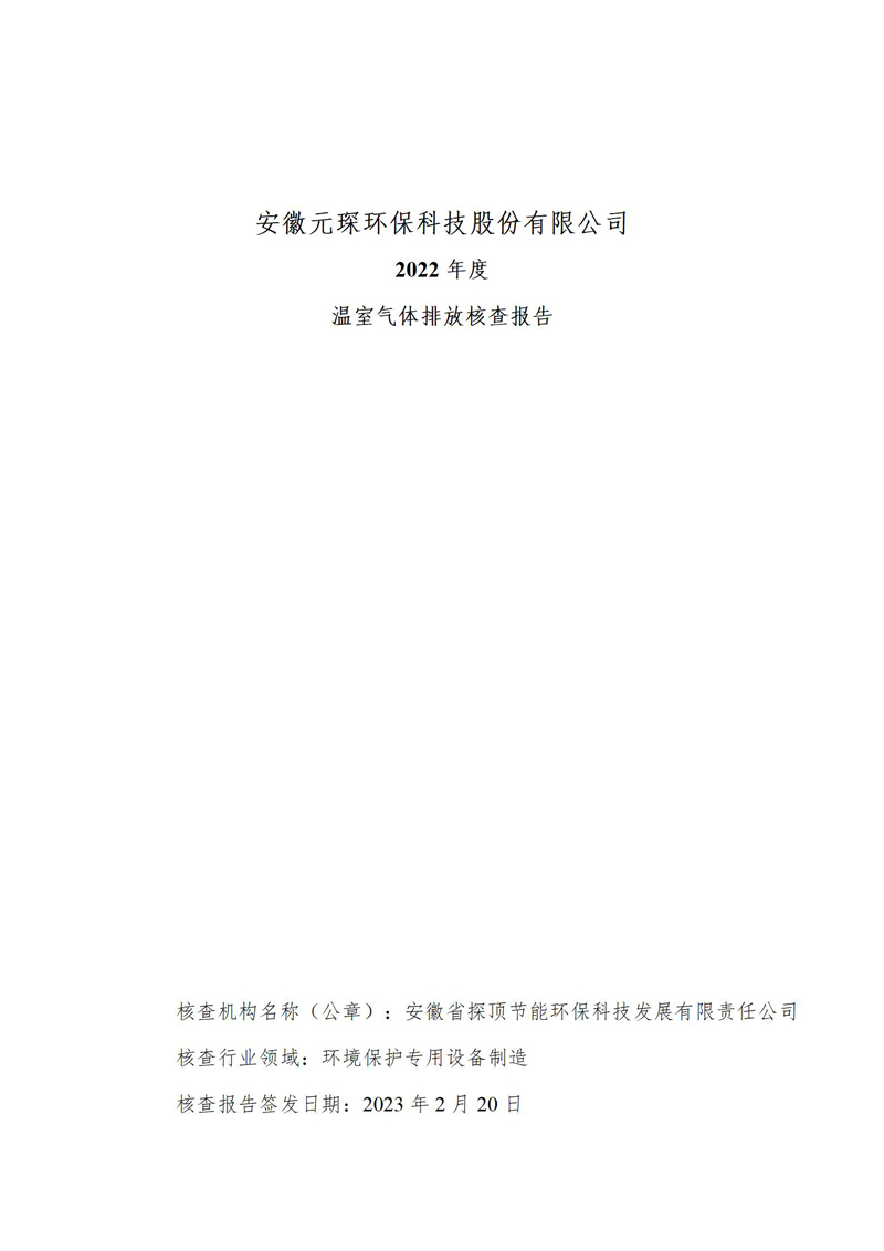 安徽元琛環保科技股份有限公司2022年度溫室氣體排放核查報告