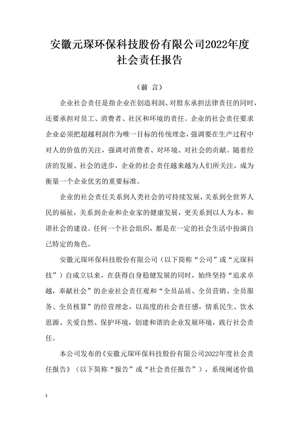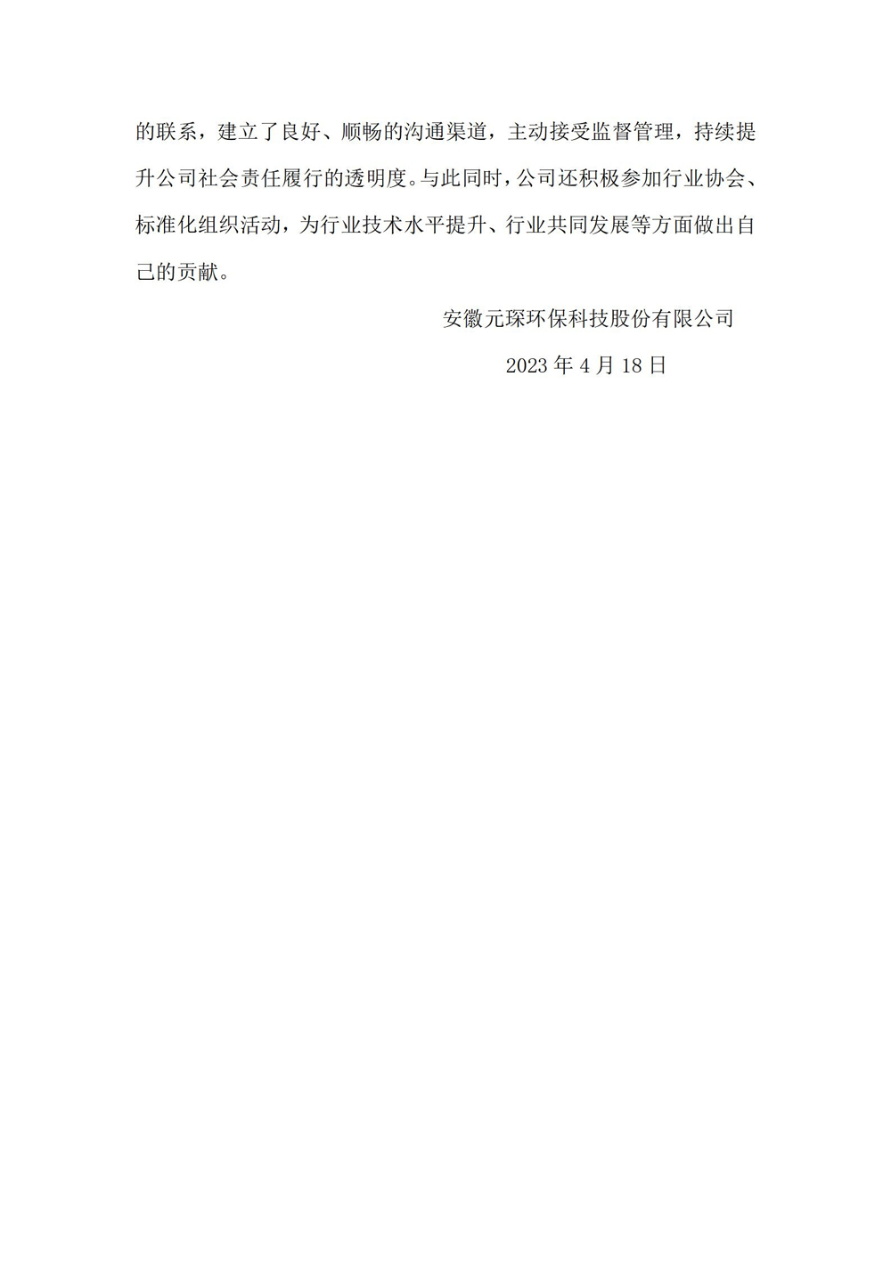 安徽元琛環保科技股份有限公司2022年度社會責任報告
