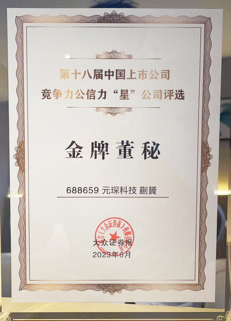 元琛科技作為科創板上市企業,在夯實主營業務發展的同時,積極建立穩定和優質的投資者基礎,保障信息披露的透明和公平,獲得了更為長期的市場支持,榮獲“2023年度投資者關系‘星’公司”獎。