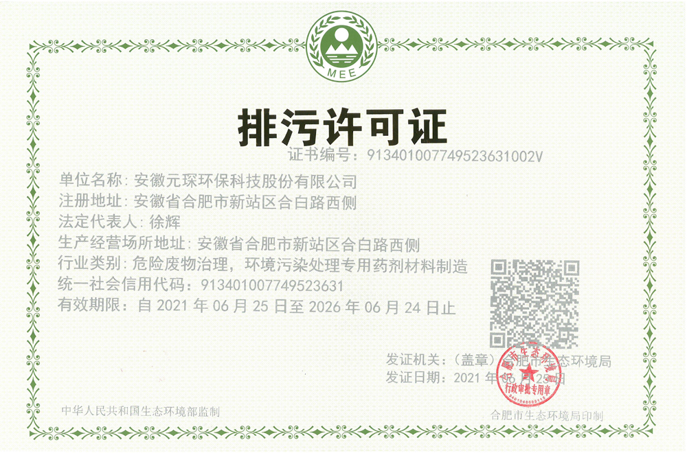 安徽元琛環保科技股份有限公司排污許可證