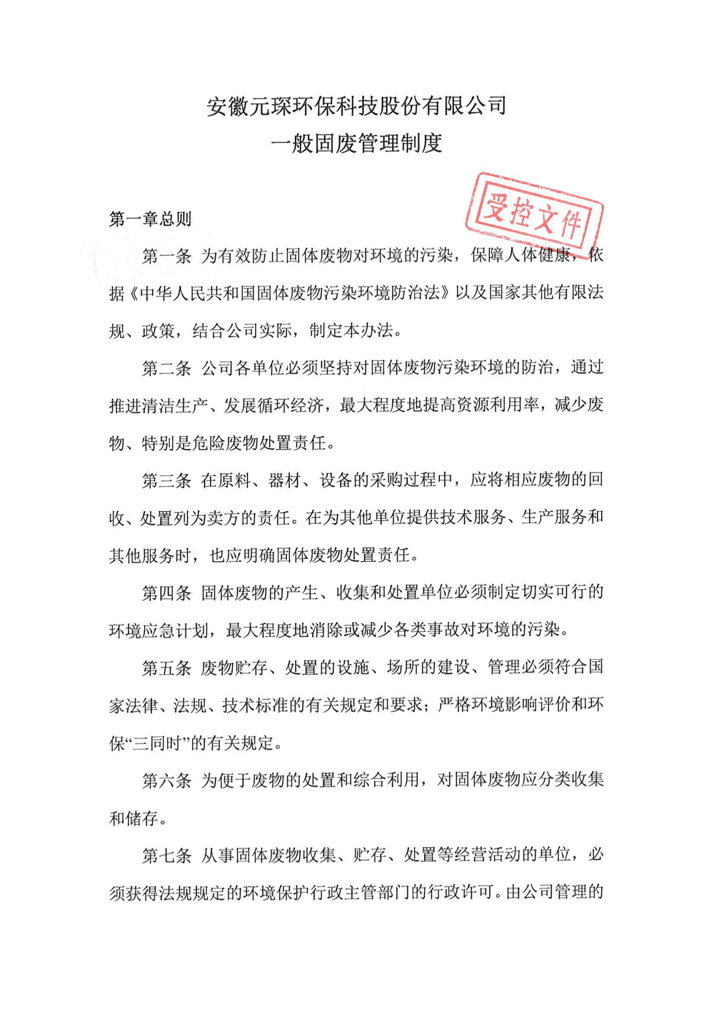 安徽元琛環保科技股份有限公司一般固廢管理制度