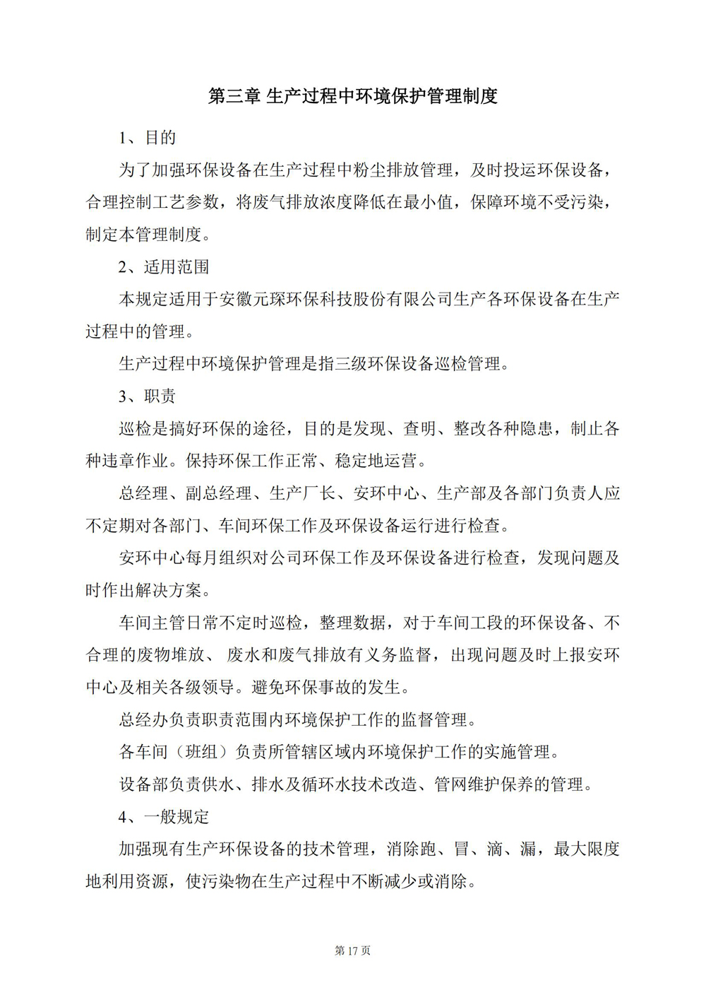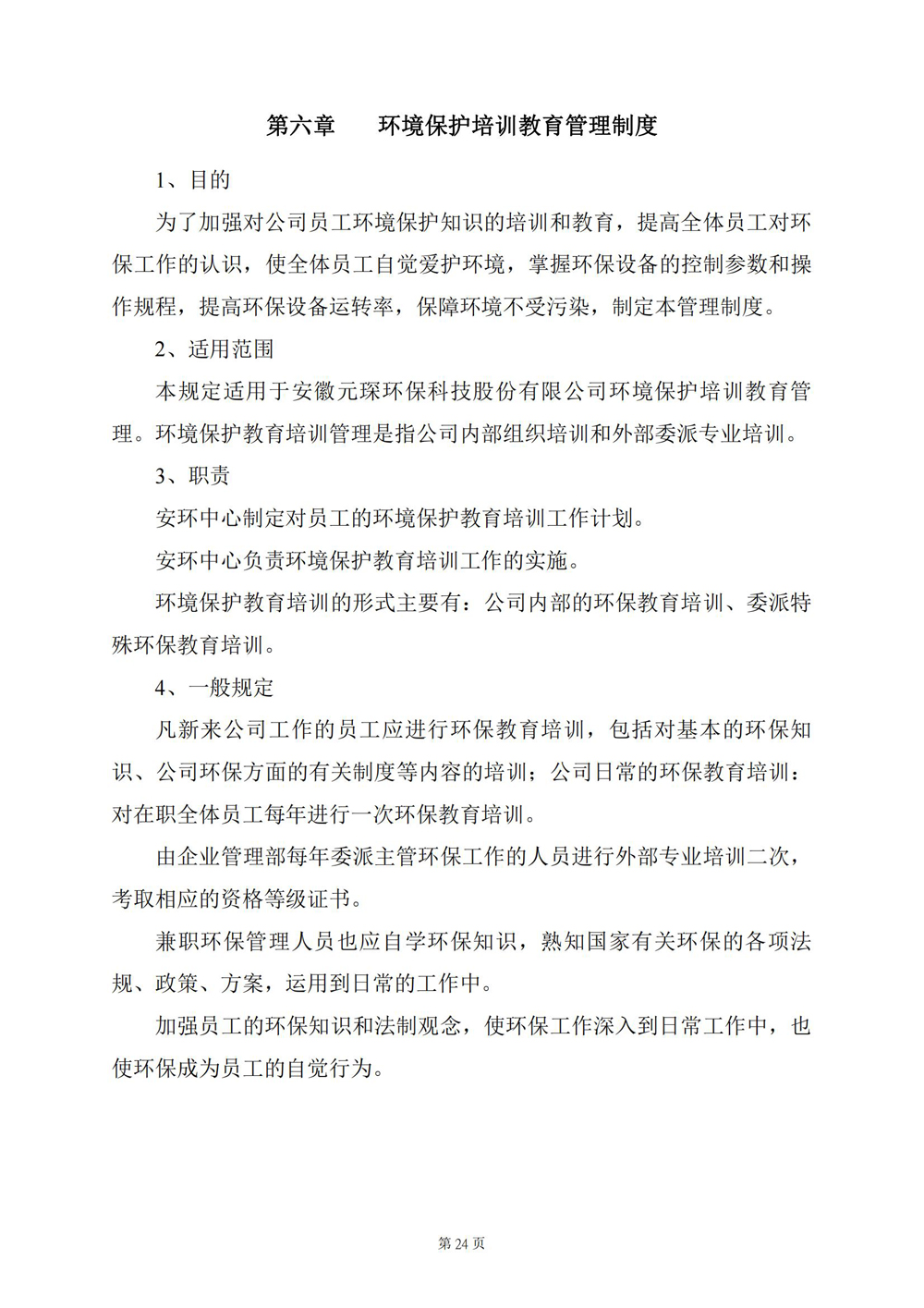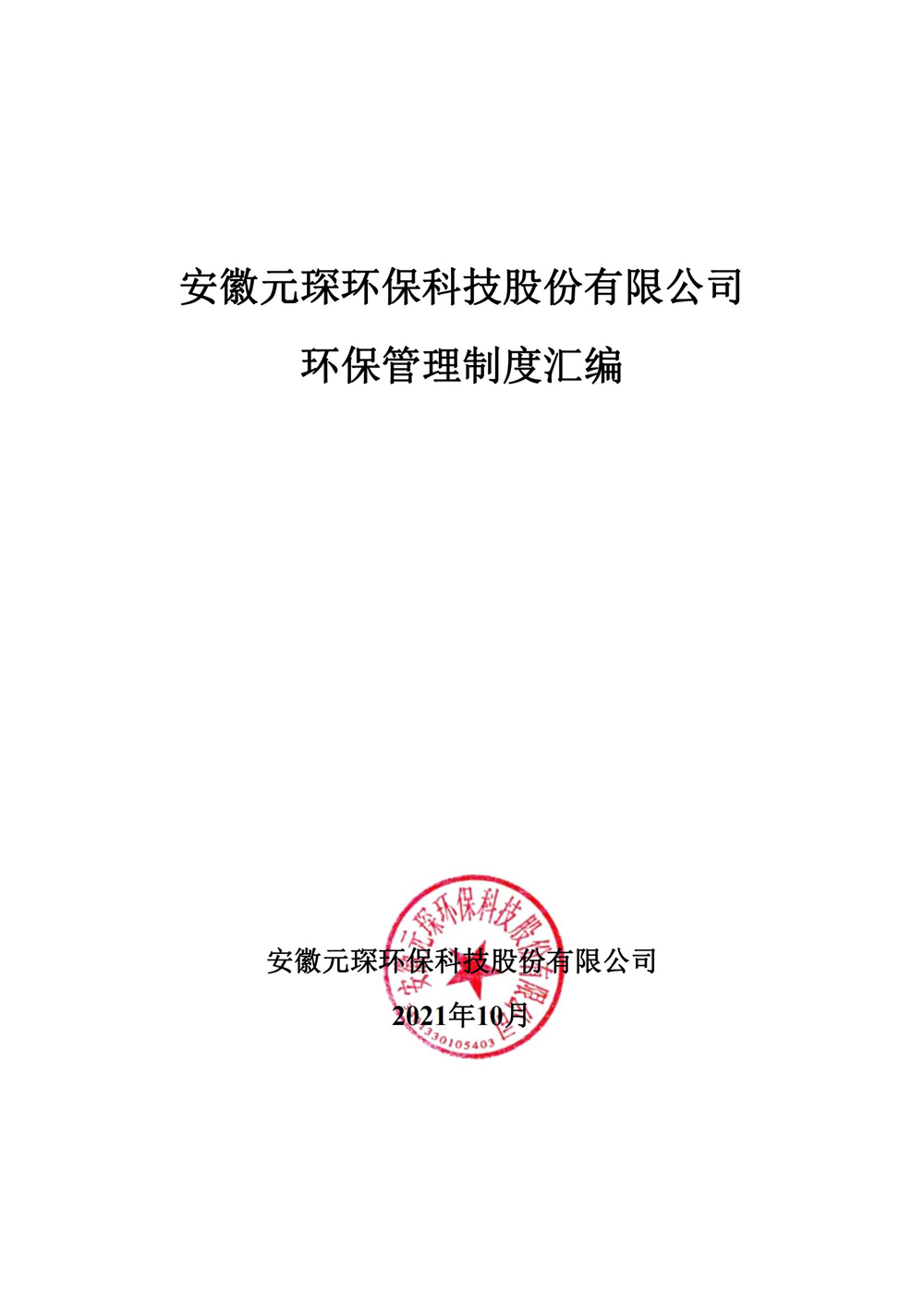 安徽元琛環保科技股份有限公司環保管理制度匯編