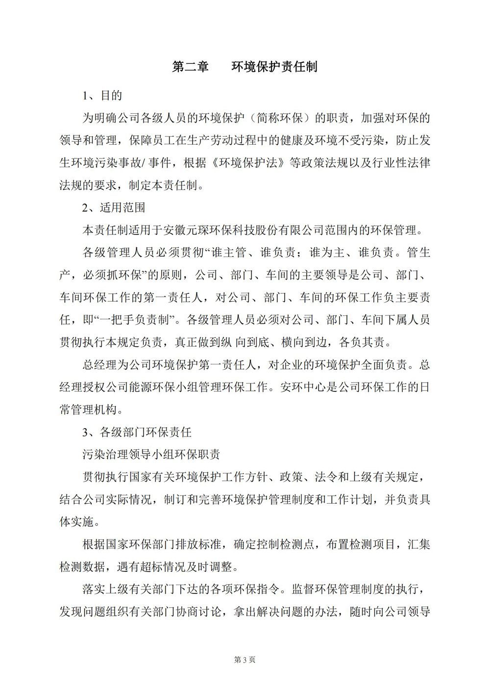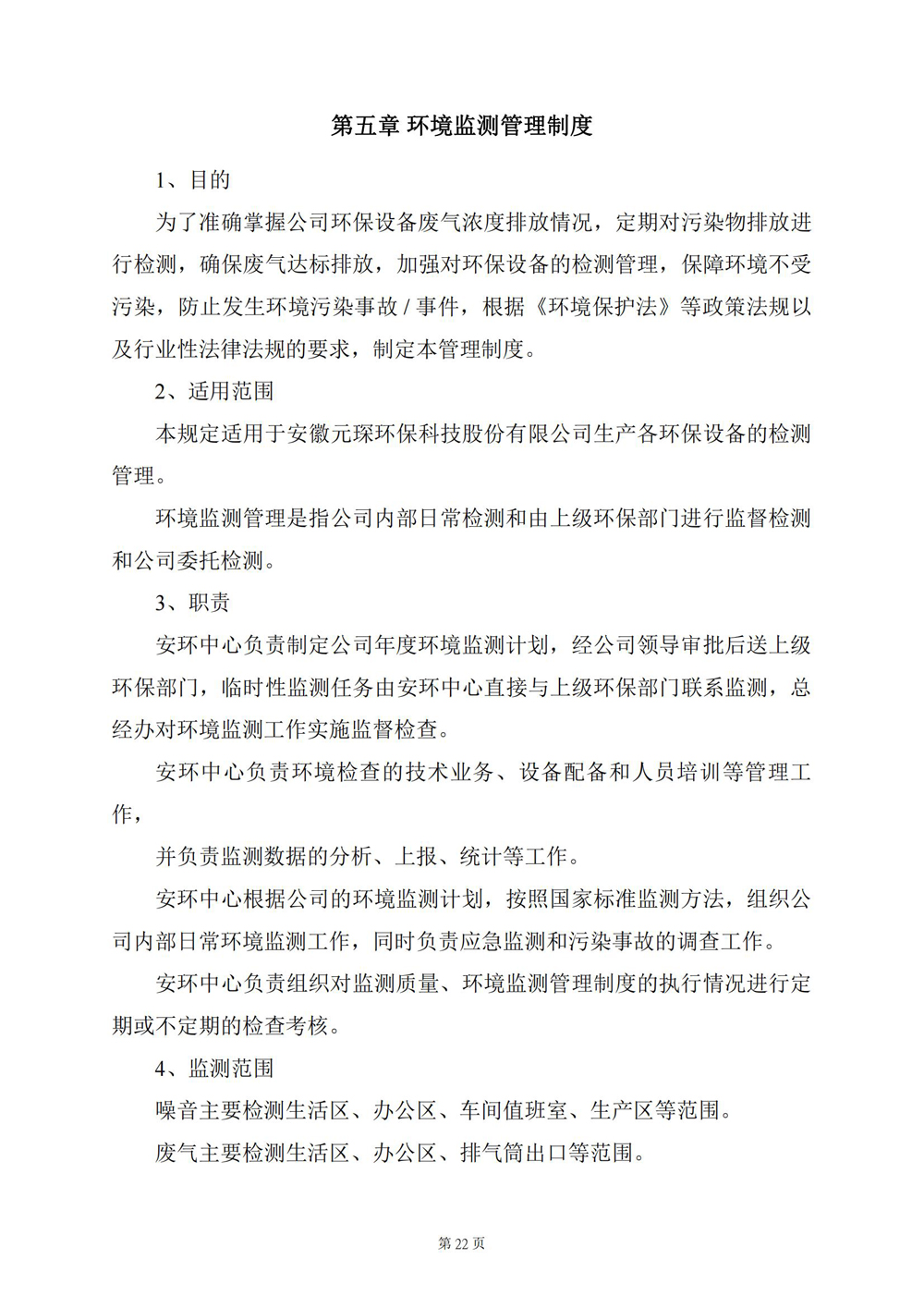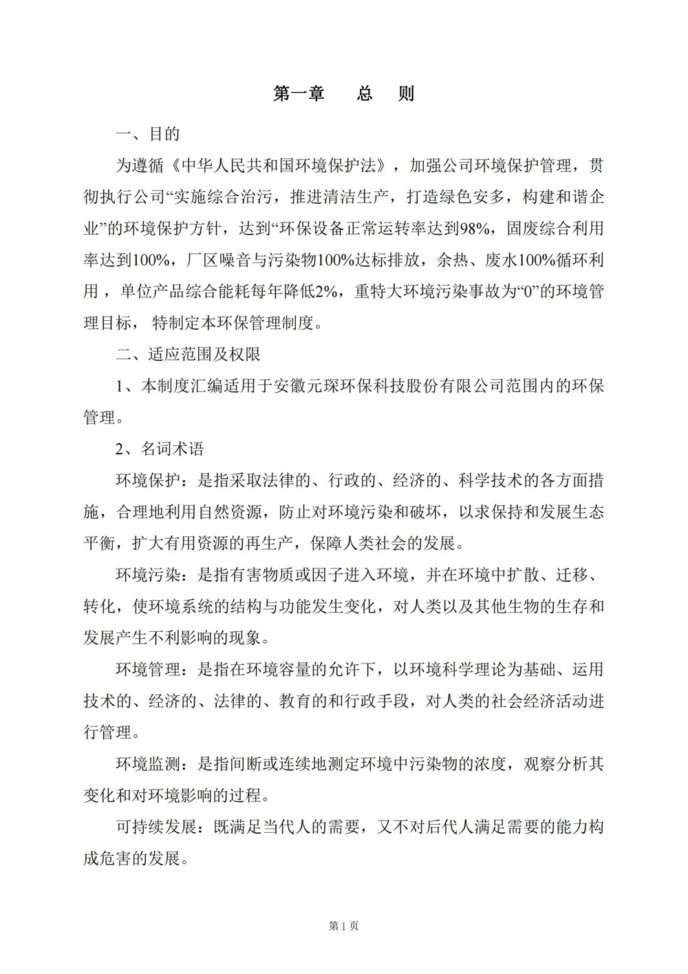 安徽元琛環保科技股份有限公司環保管理制度匯編