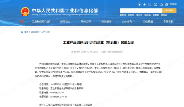 中華人民共和國工業(yè)和信息化部官方網(wǎng)站于10月18日發(fā)布了《工業(yè)產(chǎn)品綠色設(shè)計(jì)示范企業(yè)(第五批)名單公示》,經(jīng)過初審篩選、復(fù)審答辯,元琛科技成功獲得工業(yè)產(chǎn)品綠色設(shè)計(jì)示范企業(yè)榮譽(yù)稱號。