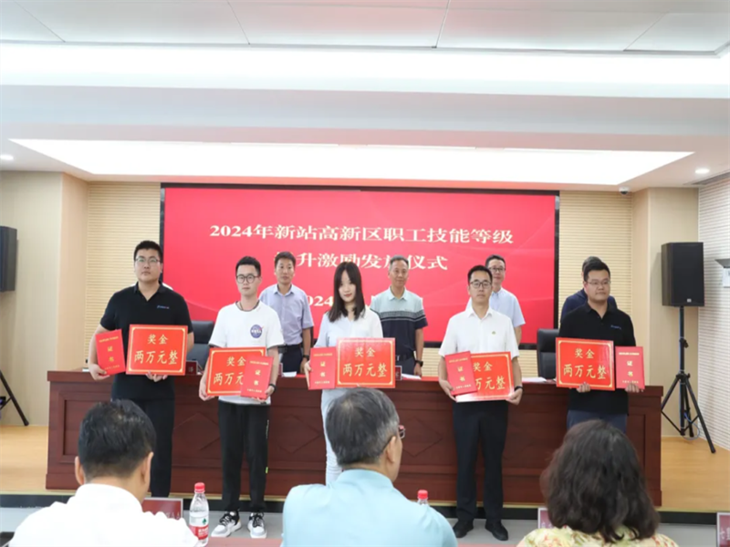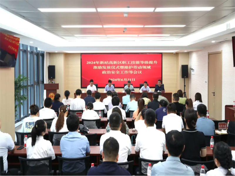 為深入推進新時代產業工人隊伍建設改革,不斷激發產業工人學習技能、提升本領的熱情,維護勞動領域政治安全工作大局,加強全區企事業單位廠務公開民主管理、推進工會組建和會員發展、持續做好民生實事等工作。6月21日下午,2024年新站高新區職工職業技能等級提升激勵發放儀式暨維護勞動領域政治安全工作等會議在合肥市新站工人文化宮召開。區總工會主席季紅軍,副主席浦瑋、梁華友、韓壽柏、文澤出席會議并為優秀職工頒獎。