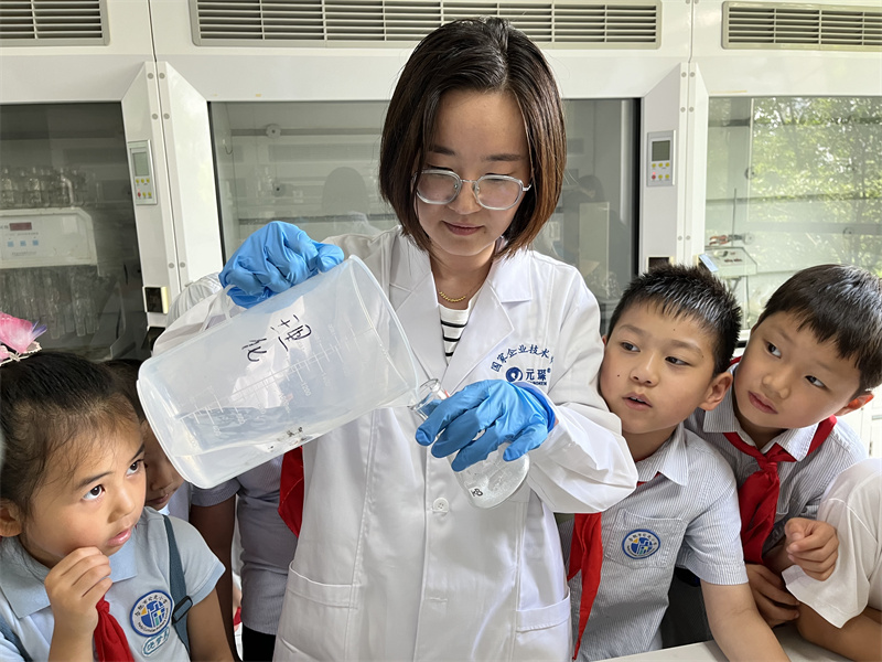 隨后,大家一同來到元琛科技的實驗中心,在這里化身小小科學家,學習化學知識,親手操作實驗,感受科學的魅力。實驗過程中,小朋友們現場開啟“十萬個為什么”模式,與元琛科技科研人員頻繁互動,積極提問。每一次成功的實驗都伴隨著孩子們的掌聲與歡呼,他們在歡笑中領略了科學的樂趣,也在掌聲中思考著科學的力量。