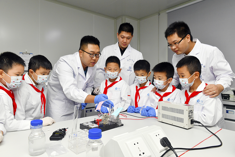 通過參觀實驗室、在老師們帶領下做實驗的方式,萌娃們了解二氧化碳的產生,那究竟什么是“碳達峰、碳中和”呢?趙羽博士再次用被子做了形象的說明:“‘碳達峰’就是讓我們的被子不能再厚了,‘碳中和’就是讓我們的被子足夠薄。這個任何非常艱巨,大家要在平時的生活中努力,比如夏天空調最高開到26度,出門盡量乘坐公共交通。”