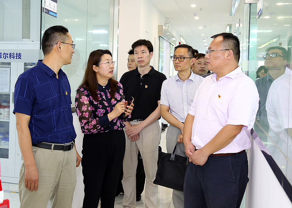 農保處、專家中心黨支部黨員先后參觀了元琛科技黨建文化展廳和環保檢測實驗室,了解了企業業務及生產情況,聽取了元琛科技總經理、黨支部書記梁燕女士關于企業黨建工作情況介紹。